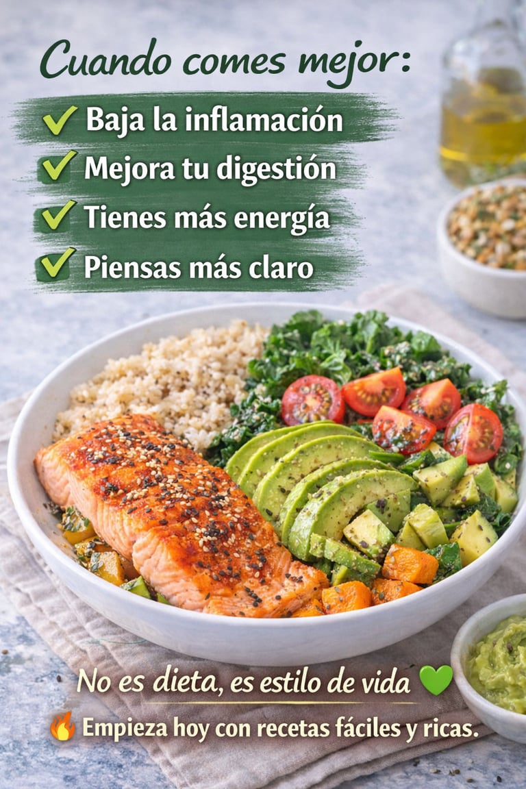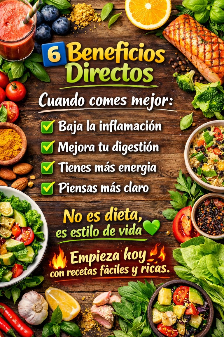 Recetas saludables, fáciles y sin ultraprocesados para bajar la inflamación, mejorar tu digestión y recuperar tu energía sin dietas aburridas.
